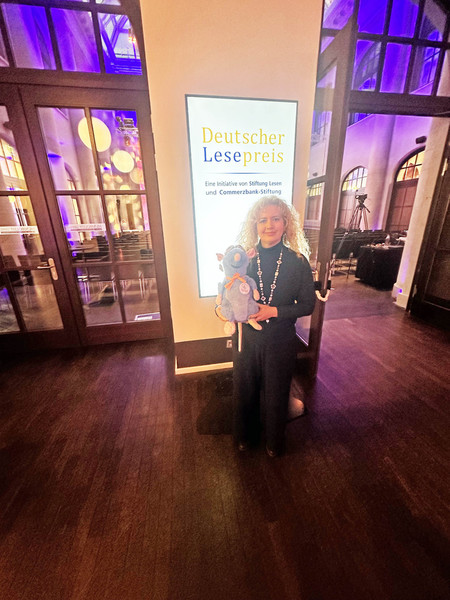 Mit dieser renomierten Auszeichnung wurde unsere Schule für ihr Konzept "Hand in Hand ins Leseland" prämiert. Sabine Reichel und Susanne Finnemann reisten mit der Leseratte nach Berlin und nahmen die Auszeichnung am 05.02.2026 sehr stolz für die Schule entgegen.