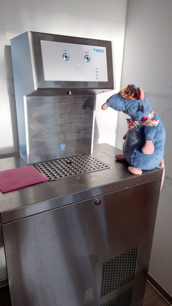 Juhu! Wir haben einen Wasserspender bekommen. Vielen herzlichen Dank an die Erlanger Stadtwerke! Der Wasserspender steht in der Mensa. Man kann sich stilles und sprudeliges Wasser zapfen - da freut sich auch unser Schulmaskottchen, die Leseratte! :-)